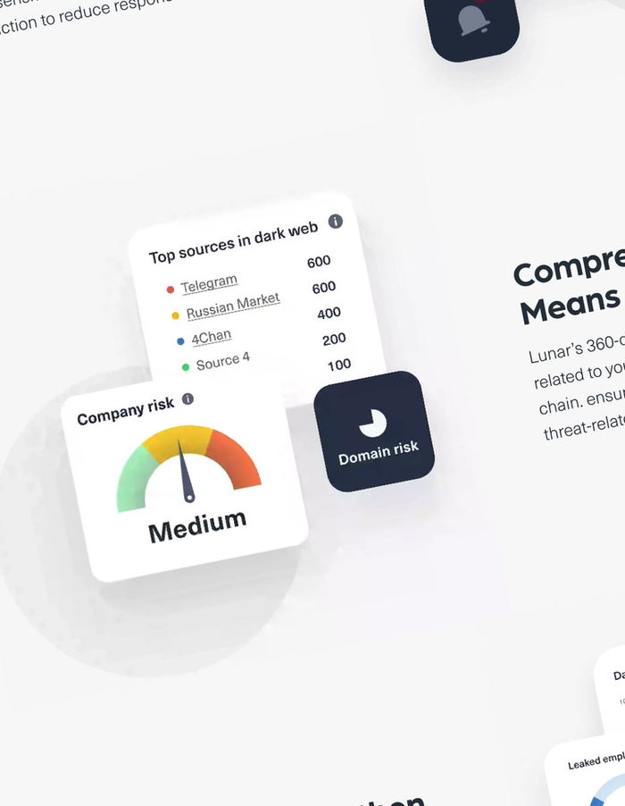 The Lunar page effectively presents the Lunar platform as a cutting-edge dark web monitoring and threat intelligence tool. The design follows a structured layout that highlights key features and benefits of the platform.